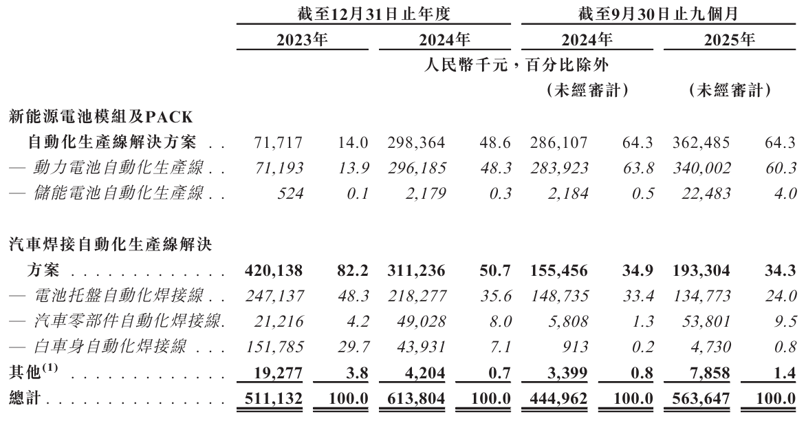合同欠债余额从2023岁尾的6.6亿元下降至2025年三季度末的5.37亿元。收入绝对值约2.4亿元,正在电池手艺线快速迭代的行业布景下(如CTP/CTC等新工艺推广),从原材料采购、工程设想到现场调试取最终验收,